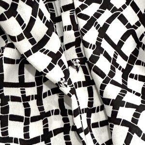 👚🏢 PLEIONE Geometric Faux Wrap Blouse | Black & White | Minimalist Chic | Sz M
