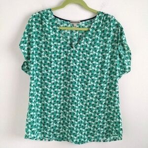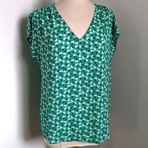 PLEIONE Green and White Floral Pattern Blouse M