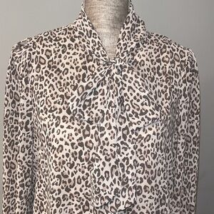 PLEIONE NWT Long sleeve print tie neck blouse Size Extra Large $68.00