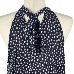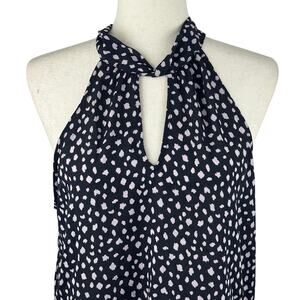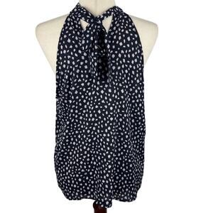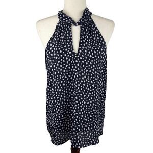 PLEIONE SPOTTED HALTER NECK KEYHOLE SLEEVELESS BLOUSE IN NAVY NWT WOMEN'S MEDIUM