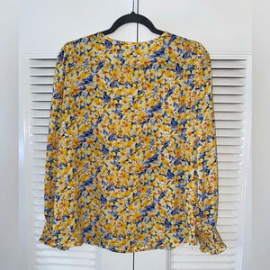 PLEIONE Yellow Multi Color Floral Print long elastic Sleeve Top