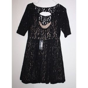 Gorgeous lace gives a romantic effect to this sweet fit-and-flare dress with a circular back cutout to further the modern allure.