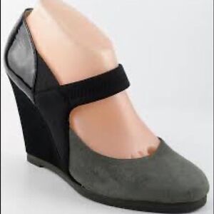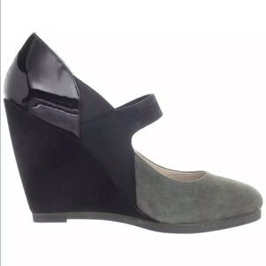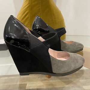 PLENTY BY TRACY REESE Suede and Patent Grey & Black Leather Mary Jane Wedge