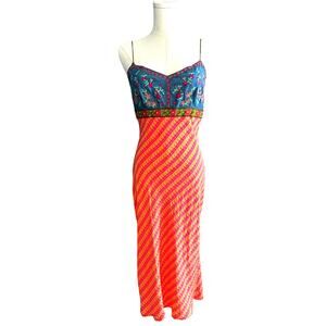 PLENTY TRACY REESE Dress Large Silk Empire Embroidered Bust 90's Y2K Slip Boho