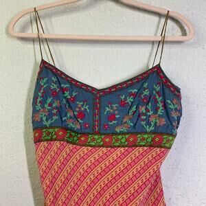 ANTHROPOLOGIE PLENTY TRACY REESE Dress Large Silk Empire Embroidered Bust 90's Y2K Slip Boho