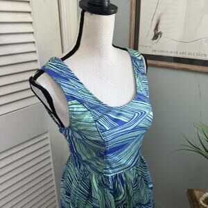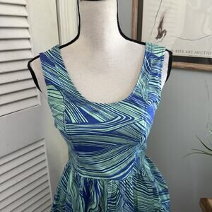 PLENTY TRACY REESE Womens 4 Blue Green Abstract Fit Flare Mini Summer Party