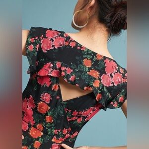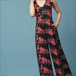 PLENTY by Tracy Reese x Anthropologie SM Laurette Black Red Floral Jumpsuit NWT