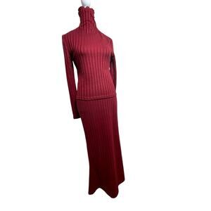 PLT Burgundy Ribbed Knit Sweater Turtleneck Top & Maxi Skirt Set Sz 10 NWT