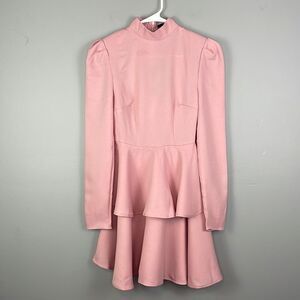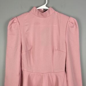 PLT Dusty Pink high neck tiered skater dress. US size 0. New with tags. In good condition. There are a couple small snags on the left sleeve. Armpit to pit measures 15 inches. Top of shoulder down 34 inches. Comes from a smoke free home.