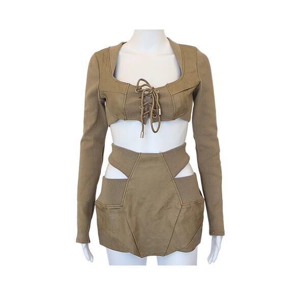 PLT LABEL Faux Leather Mini Skirt & Crop Top Set - Tan - 4