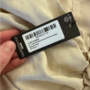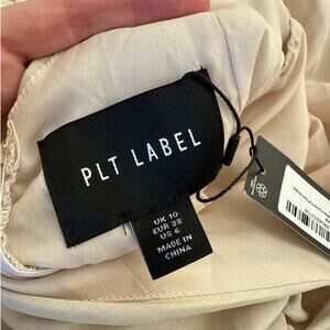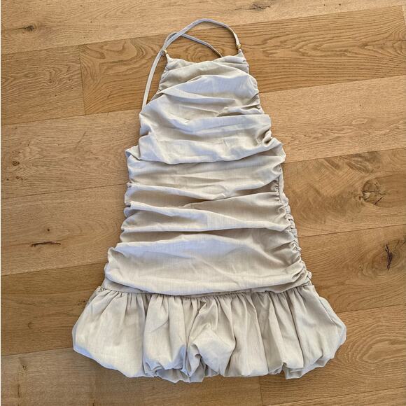 PLT Label - Ruched Puff Hem Strappy Bodycon Mini Dress in Beige