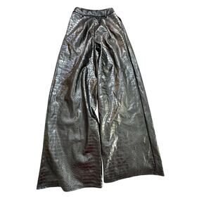PLT Label Women's Black Croc Faux Leather Wide Leg Tailored Pants Size 2