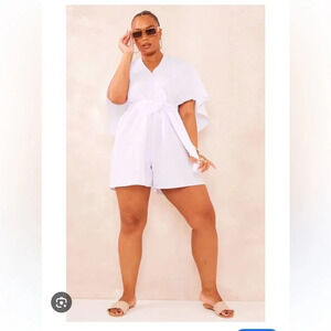 PLT Plus White Poplin Wrap Front Playsuit Size 26