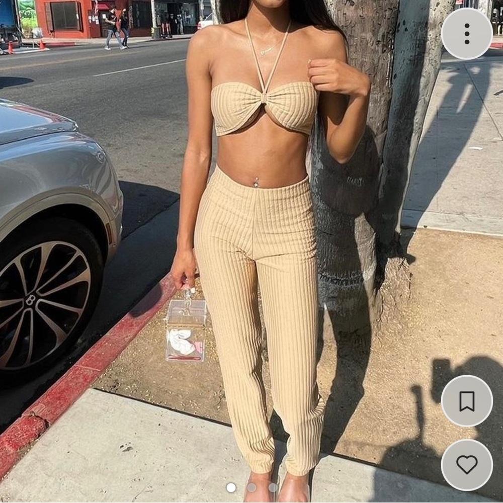 Tan ribbed pants and top. worn once, top small (US 2) & bottoms xs (US 0) #twopiece #twopieceset #vacation #plt #ribbedpants