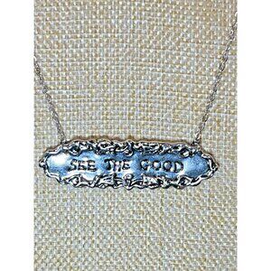PLUNDER DESIGN - Silver "SEE THE GOOD" Engraved - Adjustable 11" Necklace - NEW