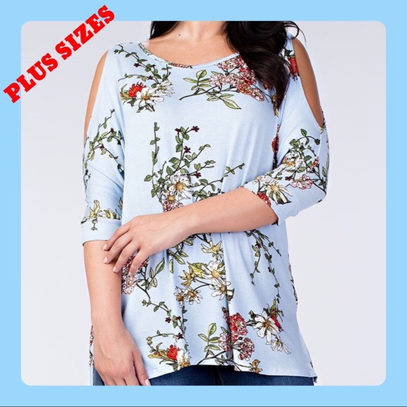 đź‘—HPđź‘—PLUS SIZE -Lovely Light Blue Floral Cold Shoulder Tunic.