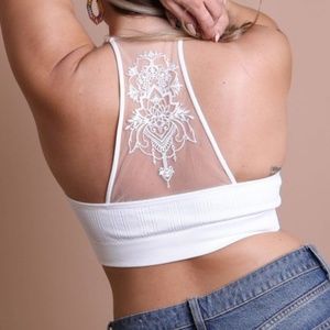 PLUS Boho Racerback Mesh Bralette White Floral Seamless