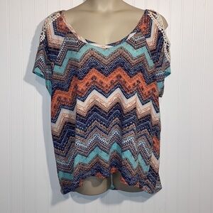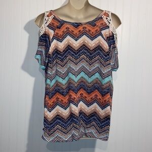 Chevron style flutter sleeve blouse. Goes with everything. Light weight easy to wear.