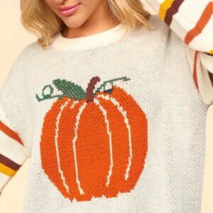 PLUS PUMPKIN JACQUARD OVERSIZED SWEATER KNIT TOP