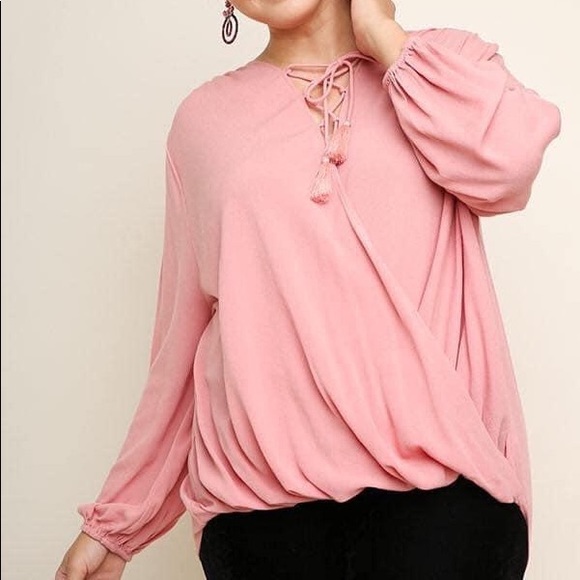 This plus size blouse is so comfortable. Has the cross cross front w/tie.