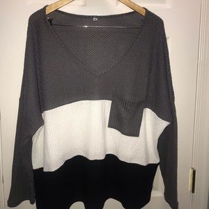 PLUS SIZE COLORBLOCK waffle tops, bell sleeves, front tie, button up, made out of cotton ane polyester๐๐๐