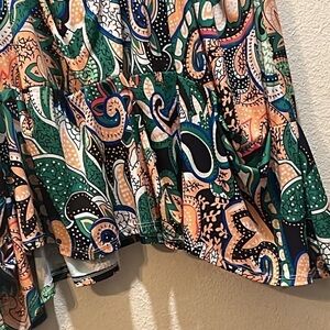 PLUS SIZE LA BASS GREEN/MULTI PATTERNED JERSEY LONG A-LINE DRESS size 22/24