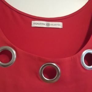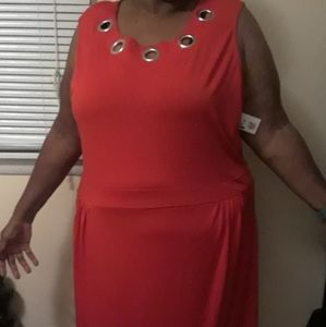 Midi dress, silver round grommets at collar, sleeveless, lose fit, comfortable, size 3X (26W-28W), 95% polyester/5% spandex