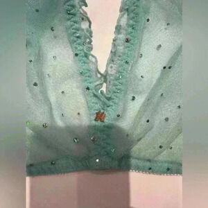 Holographic foil confetti flecks embellish our Sparkle Puff Bralette, featuring sheer tulle cups and adjustable straps.
