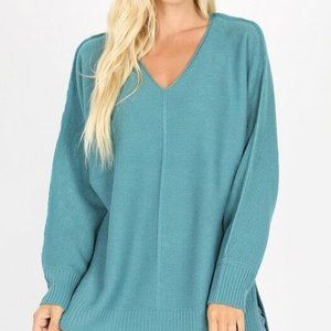 PLUS SIZE SEAM DETAILED V-NECK SWEATER RIBBED TRI