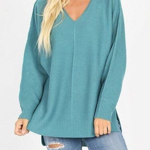 PLUS RIBBED TRIM SEAM DETAILED V-NECK SWEATER