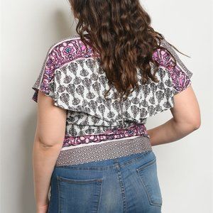 PLUS SIZE SHORT SLEEVE OFF WHITE & ROSE RUFFLED LA