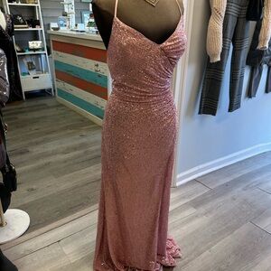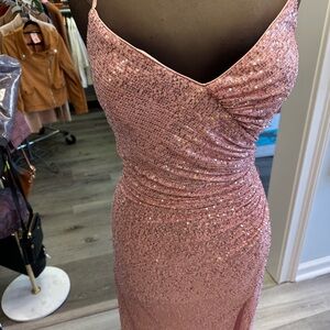 PLUS SIZE Sequence Prom Gown with low back and high slit Size 2X