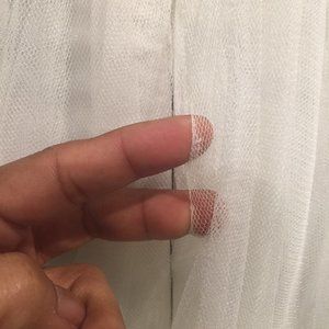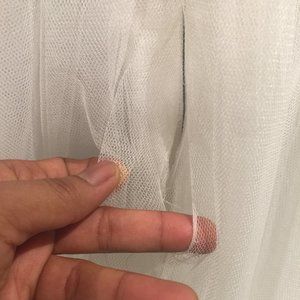 Condition: Sample gown in good condition, however, it has a small part of the broken fabric where the zipper ends, but it is really easy to repair.