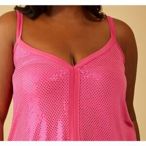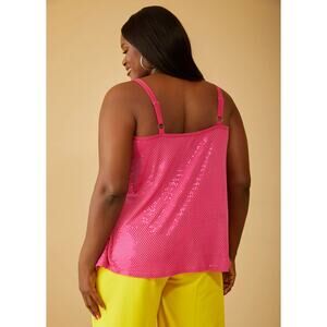 PLUS Size 30/32W | Sequin Embellished Stretch Knit Swing Shape Camisole Tank Top
