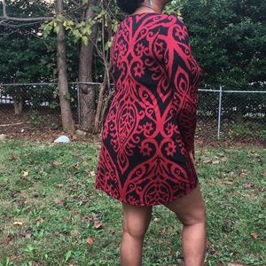 Brocade print front cross BLACK/BURGUNDY 100% made in USA 95% Polyester 5% Spandex / 36 inches long.