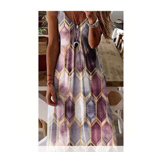 PLUS Size Geometric Print Cami Maxi in Light Purple Sizes 1XL-8XL