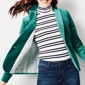 PLUS Talbots NWT Emerald Green Velvet Single Button Closure Blazer Size 14