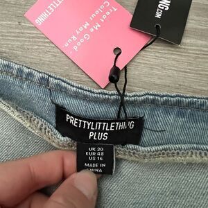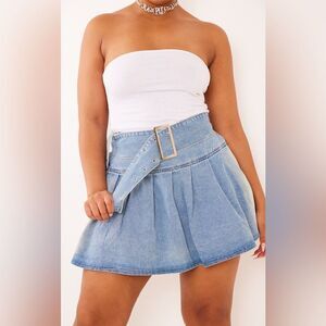 PLUS VINTAGE WASH BELTED DENIM PLEATED MINI SKIRT SIZE 16 NWT