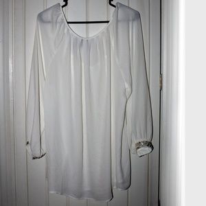Size 2X, white New Directions blouse. The sleeve cuffs are decked out in bling to make you sparkle!