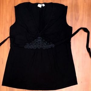 PLUS 💐Size Yves Woman Black Empire Textured Fabric Flowers Belted Rayon Top - 18/20 95% Rayon 5% Spandex