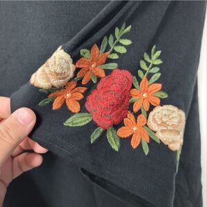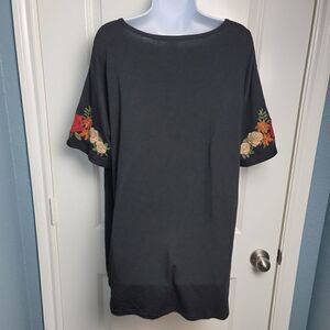 Adorable plus size Amaryllis top with accent embroidered style flowers on each sleeve
