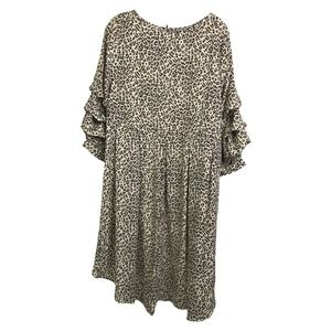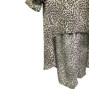 P.Luca Milano Women's Tunic Top Hi-Lo Puff Gathered Sleeves Brown Leopard L NWT