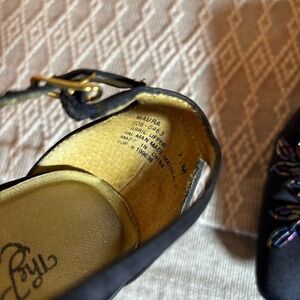 PM Collection Maura Navy Beaded Formal Fabric Heel. Size 7 1/2. 2 3/4" Heel. Wedding, church, shower or other formal occasion. Pre-owned. Adjustable strap buckle.