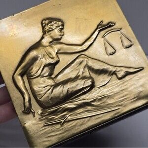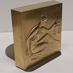 PM Craftsman BRASS Metal Bookend LADY JUSTICE WITH SCALES Vintage MCM Art Deco