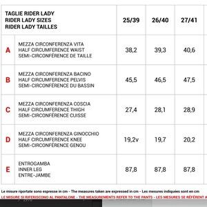 Link to size guide: https://en.pmj.it/products/new-rider-lady?variant=43733489090858