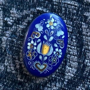 Beautiful snd perfect vintage P Melzer unsigned enamel painted brooch, color blue is fabulous, tiny details, perfect condition, says Austria on the back.