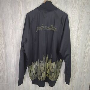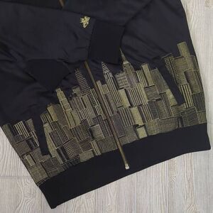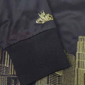 PNB Nation Black Satin Bomber Jacket Gold Thread NYC Skyline Embroidery Size 4XL