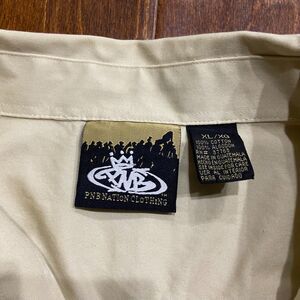 PNB Nation Vintage Y2K Tan Blue Button Down Shirt Cotton Men's Size Extra Large