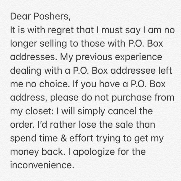 Can I use this? I have had similar issue with p.o. boxes. it takes so long for posh to give the money tj the seller! It is such a hassle. they know what they are doing too. 🤦🏻♀️🤷🏻♀️
