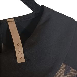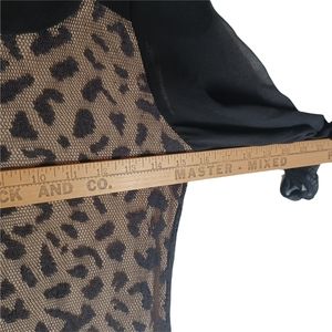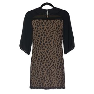 POEMA Black Lace Peter Pan Collar Sheer Sleeve Animal Print Brown Dress S